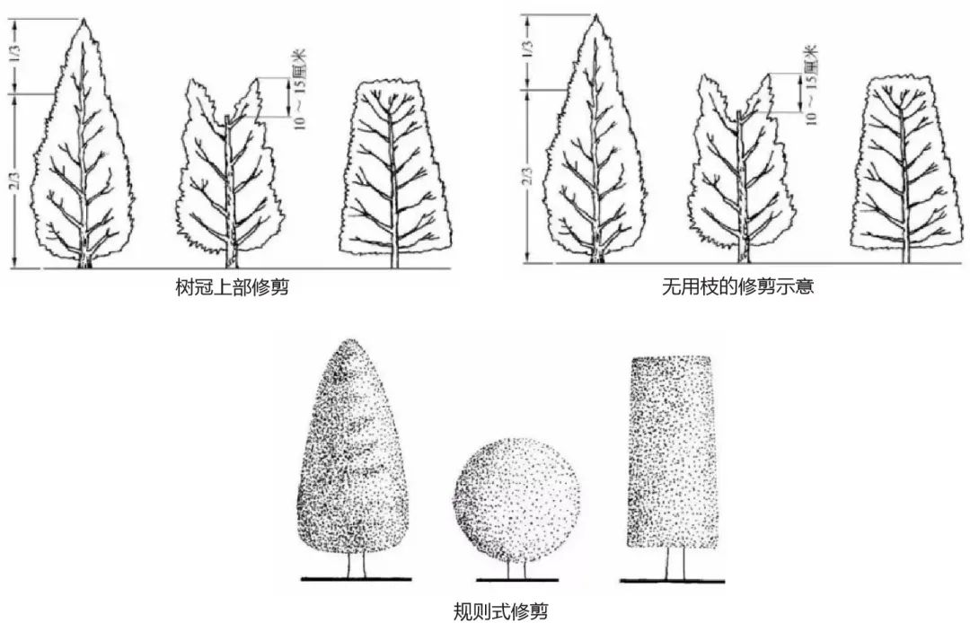 树木修剪应适应树木的天然树形、分枝习性及其长势,凡中央主干强的树种,应促进中央树干生长。